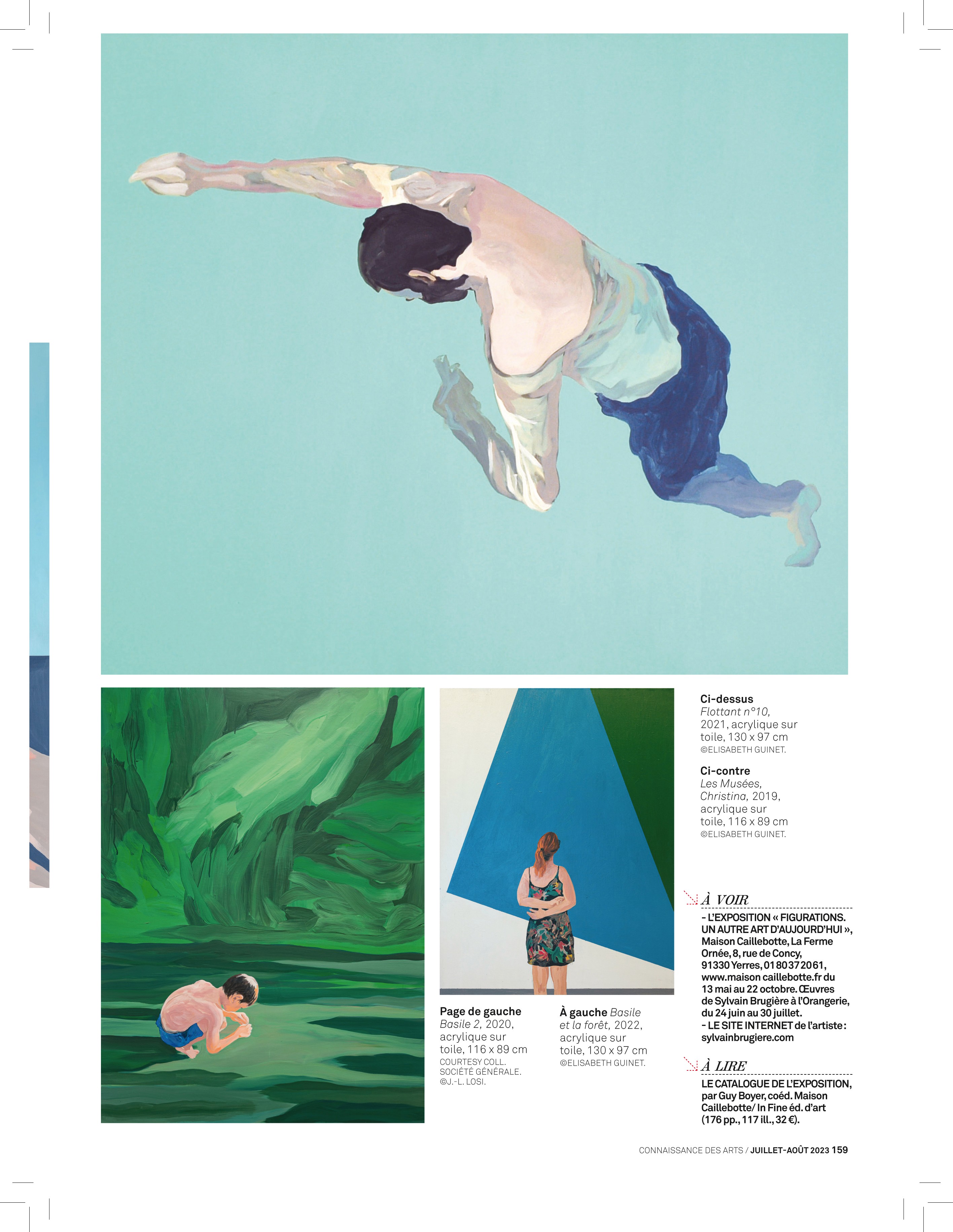 Même méthode de travail pour le portrait de son fils Basile, tout petit devant la grande peinture de Cristof Ivoré au Frac Auvergne, à Clermont-Ferrand. A la précision des traits de l’enfant agenouillé avec son jouet répond le geste épais du bouquet de fleur accroché sur la cimaise blanche. Une dernière œuvre montre encore Basile allongé devant une grande composition verticale. « Peindre est pour moi un acte primaire, sensuel, conclue Sylvain Brugière. Au-delà de ce qui est représenté, la peinture est matière physique à révéler et je suis toujours surpris par ce qui apparaît soudain à la surface de ma toile ».